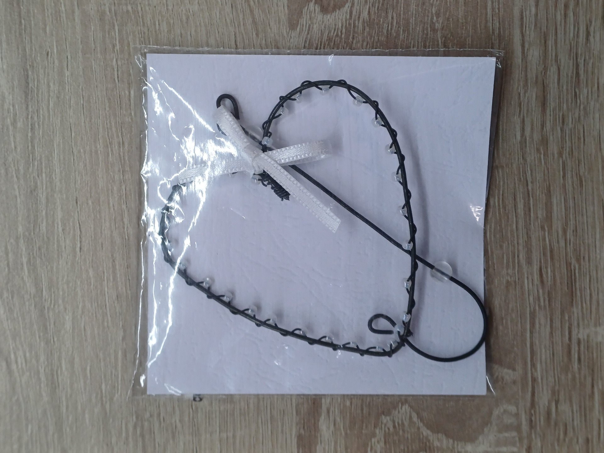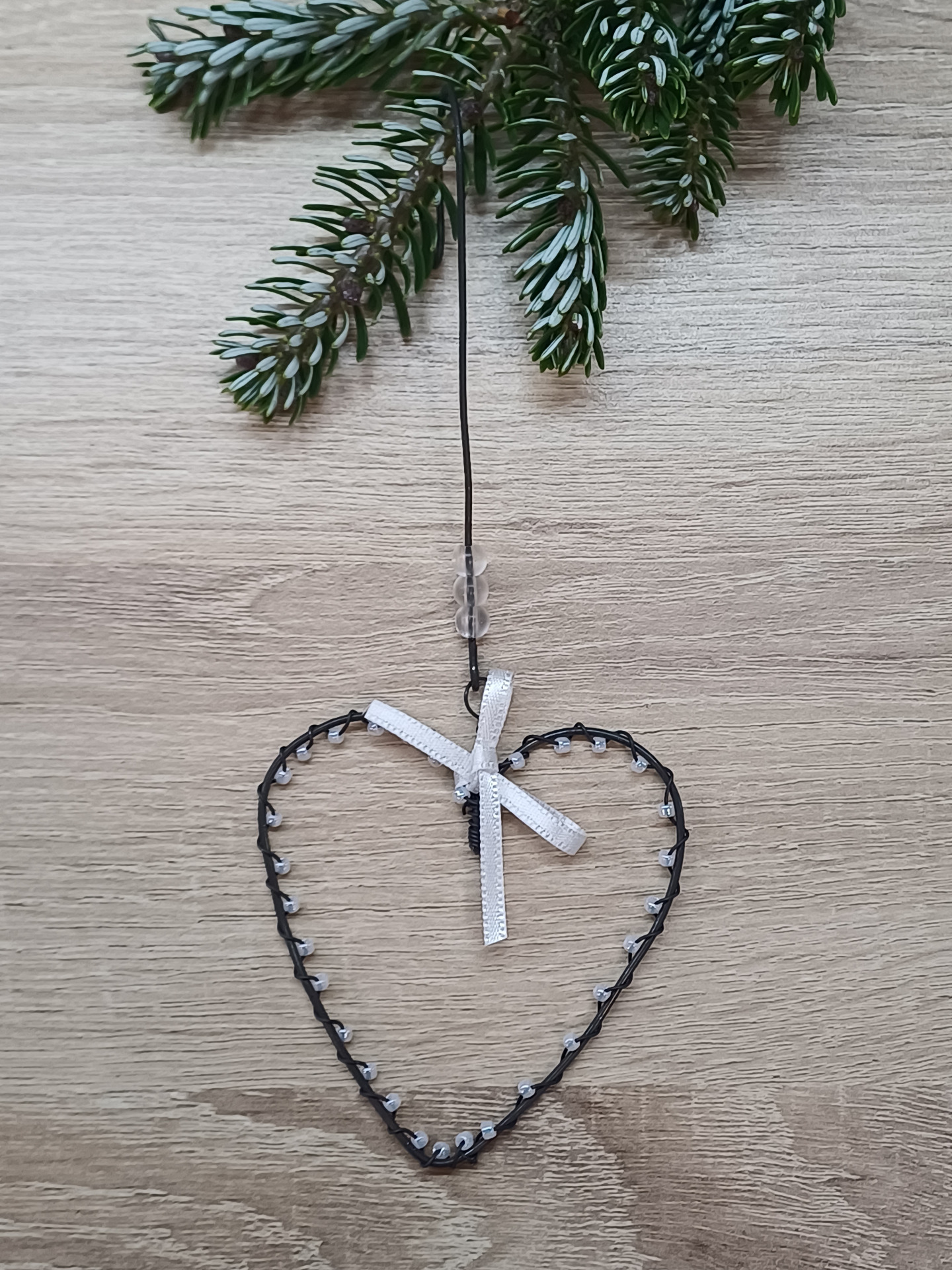 Srdíčko je vyrobeno z černého drátu a skleněných korálků. Tuhle krásnou dekoraci si můžete zavěsit do vnitřních suchých prostor a nebo ji použít jako drobný dárek.