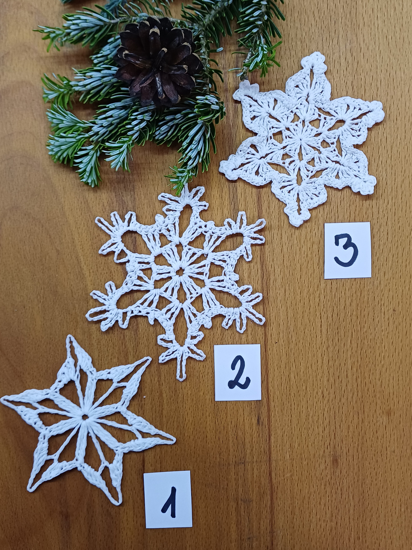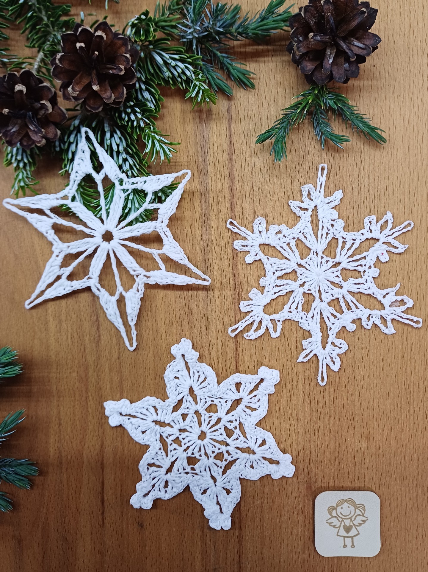 Překrásné háčkované dekorace můžete zavěsit třeba do okna nebo s nimi můžete nazdobit vánoční stromeček.