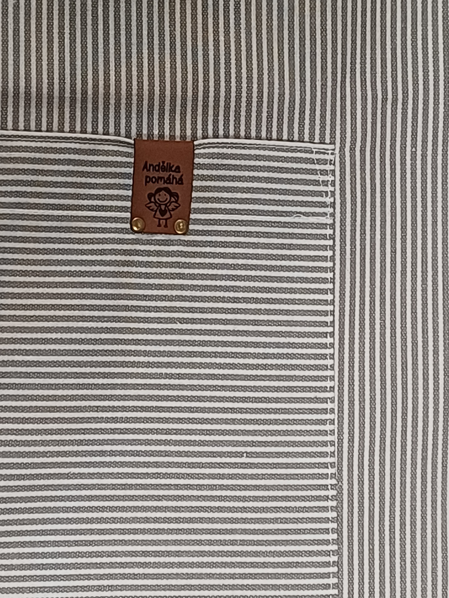 Bavlněná zástěra s naší Andělkou, která potěší každého milovníka vaření. Praktickými detaily jsou také kapsa, kam se vejdou potřebné drobnosti a poutko na utěrku.