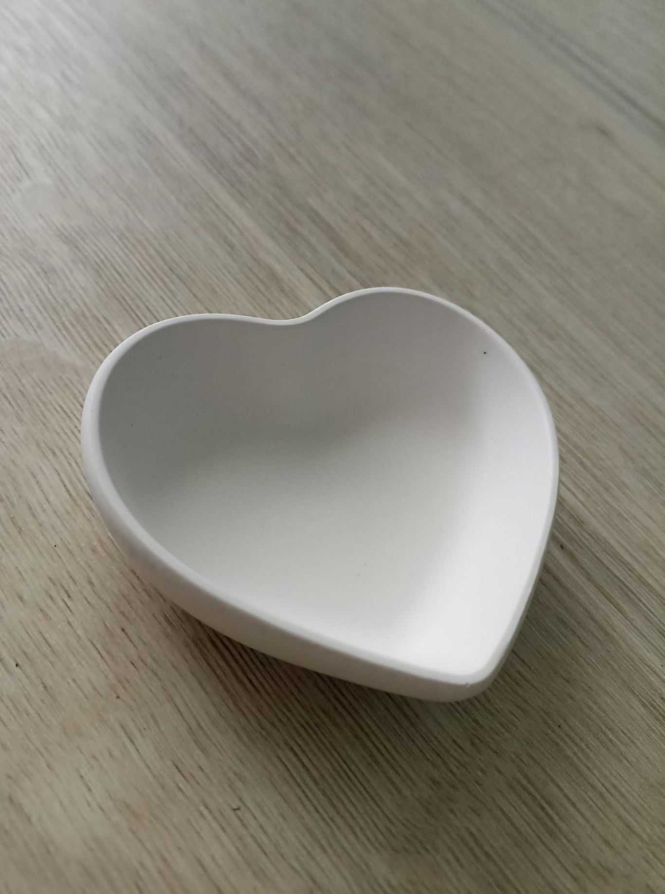 Minimalistická dekorativní mistička ve tvaru srdíčka je vyrobená z bílé odlévací hmoty, která je