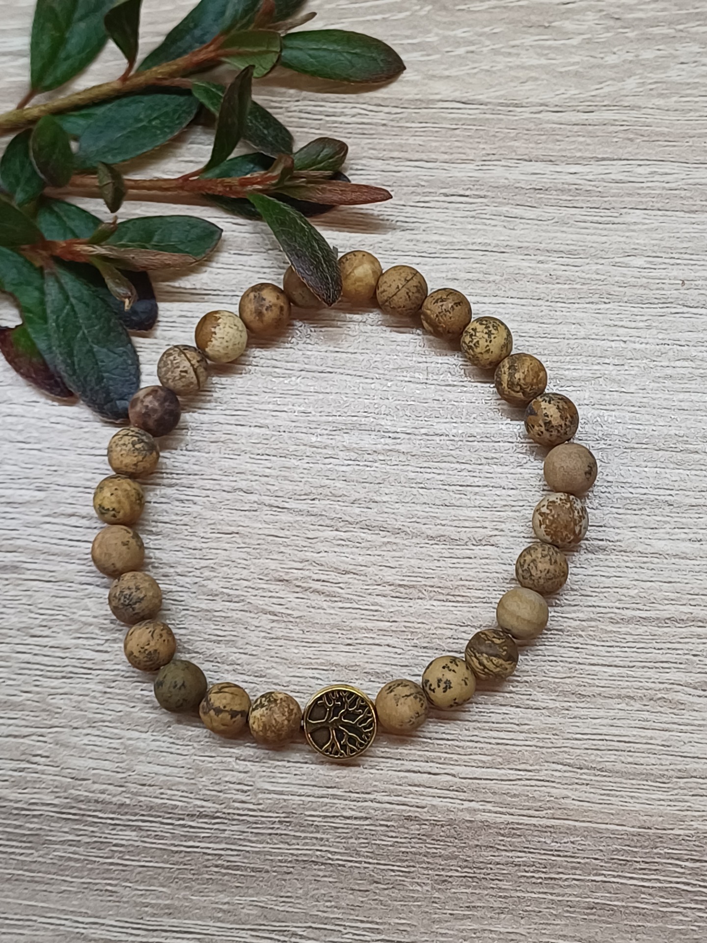 Minerální náramek z kamenů tygří oko je navlečený na pevné pružence a ozdobený srdíčkem.