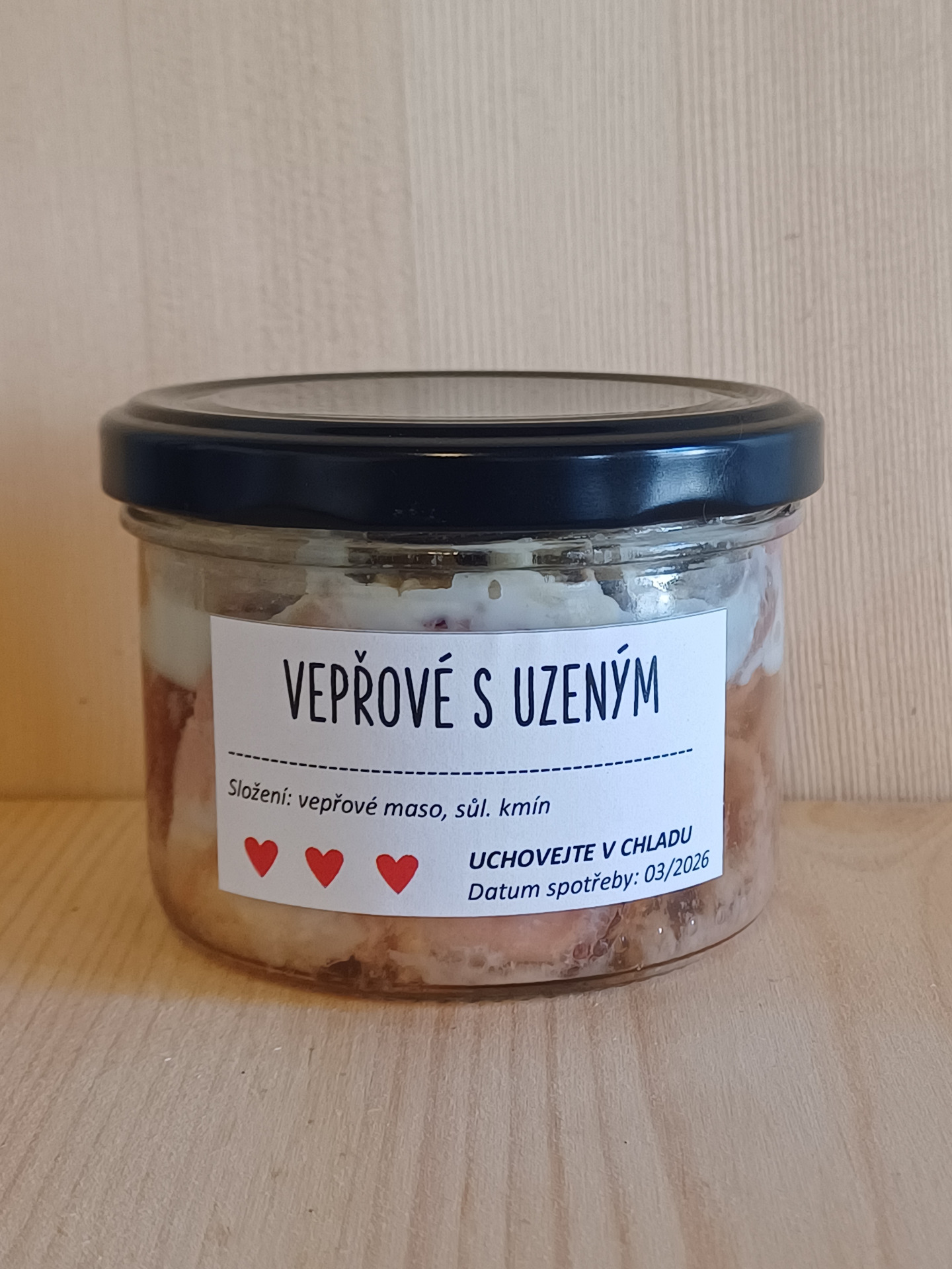 Do této domácí vepřové klasiky jsme pro Vás přidali ještě uzené maso. Maso bude skvělé na cesty, na chalupu nebo tehdy, když je mražák nebo lednička úplně prázdná. Můžete si ohřát na cibulce nebo jen tak ke chlebu.
