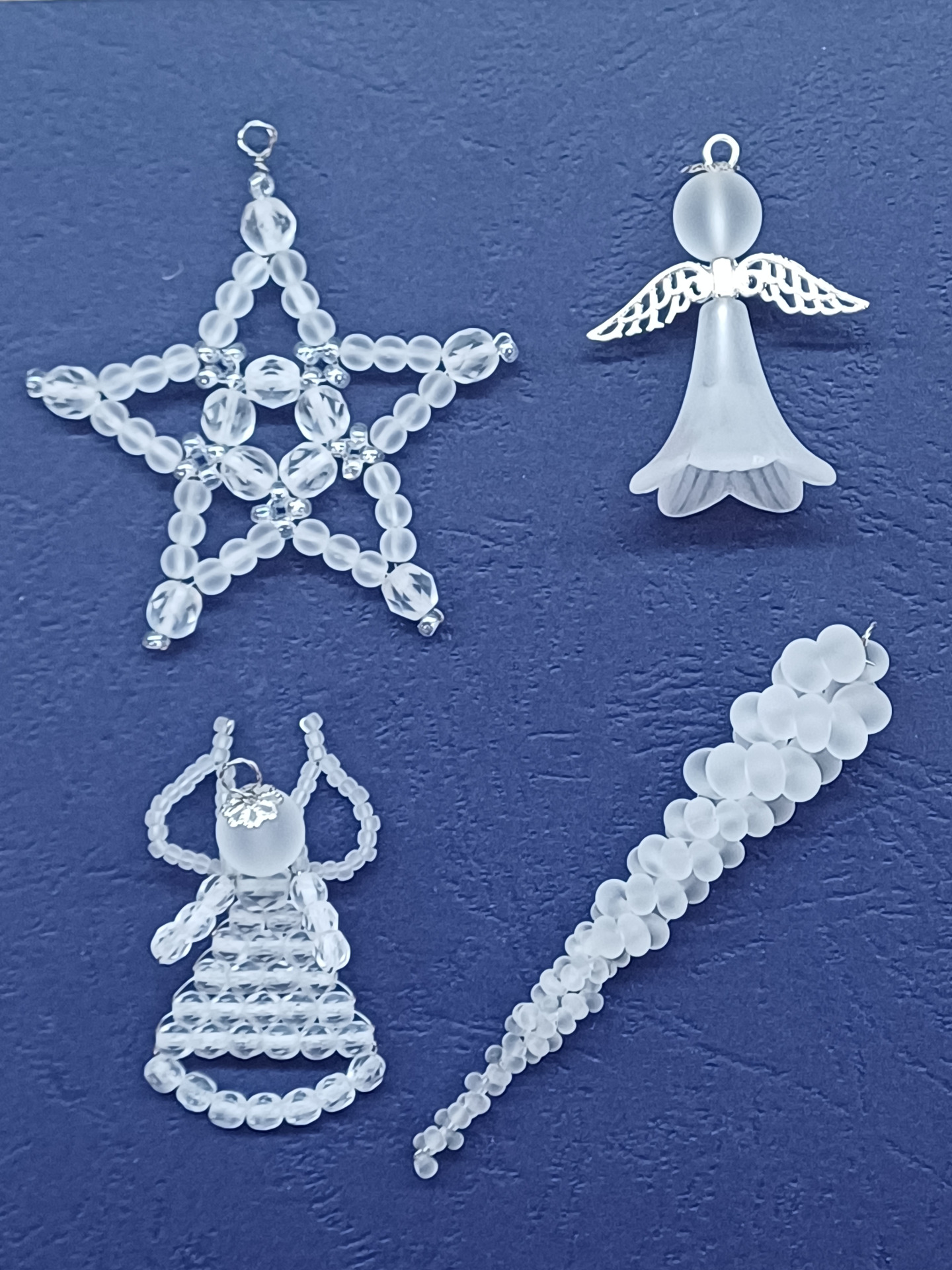Sada obsahuje 2 andílky, hvězdičku a rampouch a můžete si vybrat mezi průhlednou a mléčnou verzí.