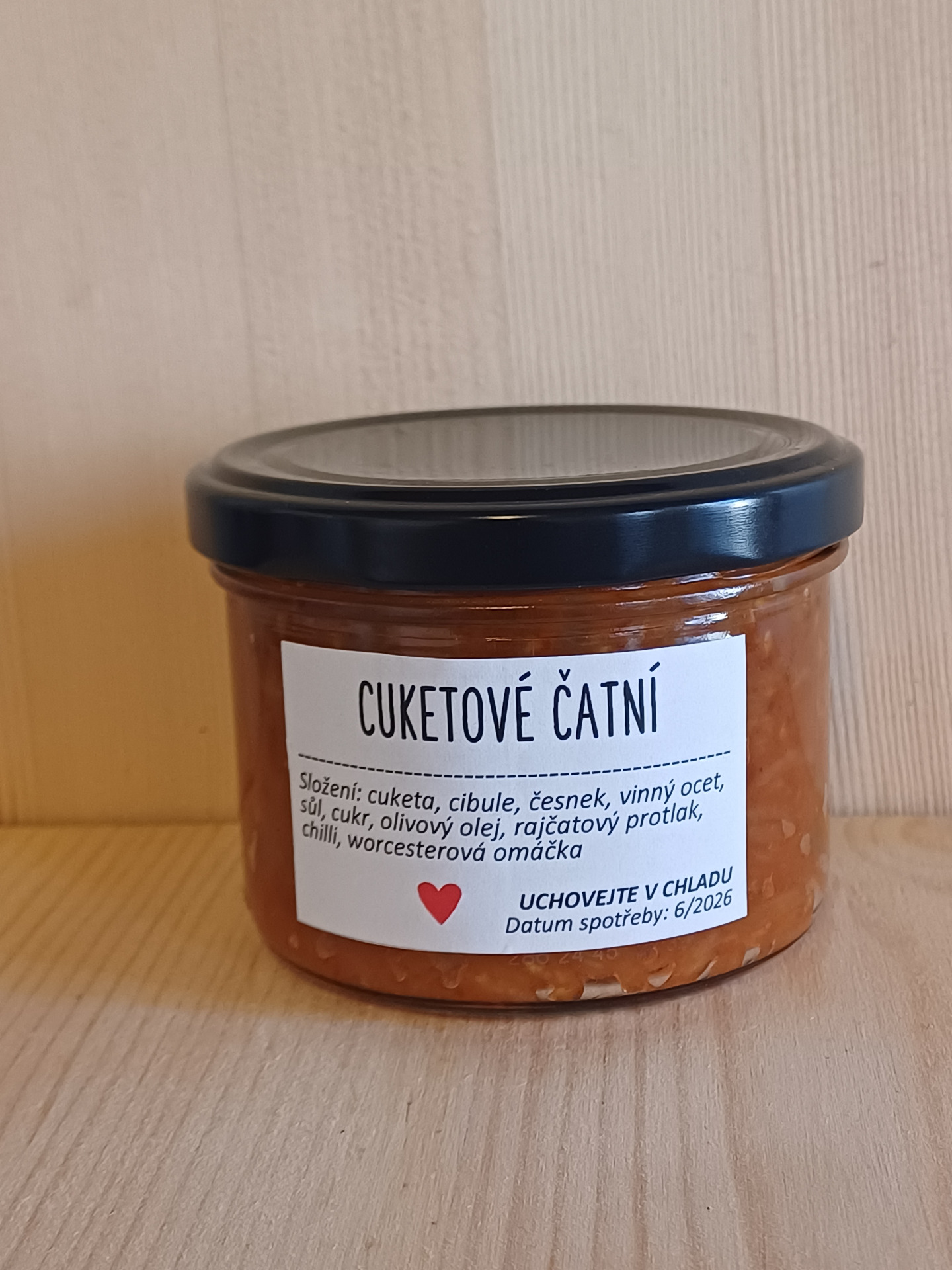 Cuketové čatní je pochutina plná chutí a vůní. Kořeněný doplněk je vynikající k masům, uzeninám, výborně se hodí také k sýrům, do sendvičů a salátů a nebo jen k chlebu s máslem.