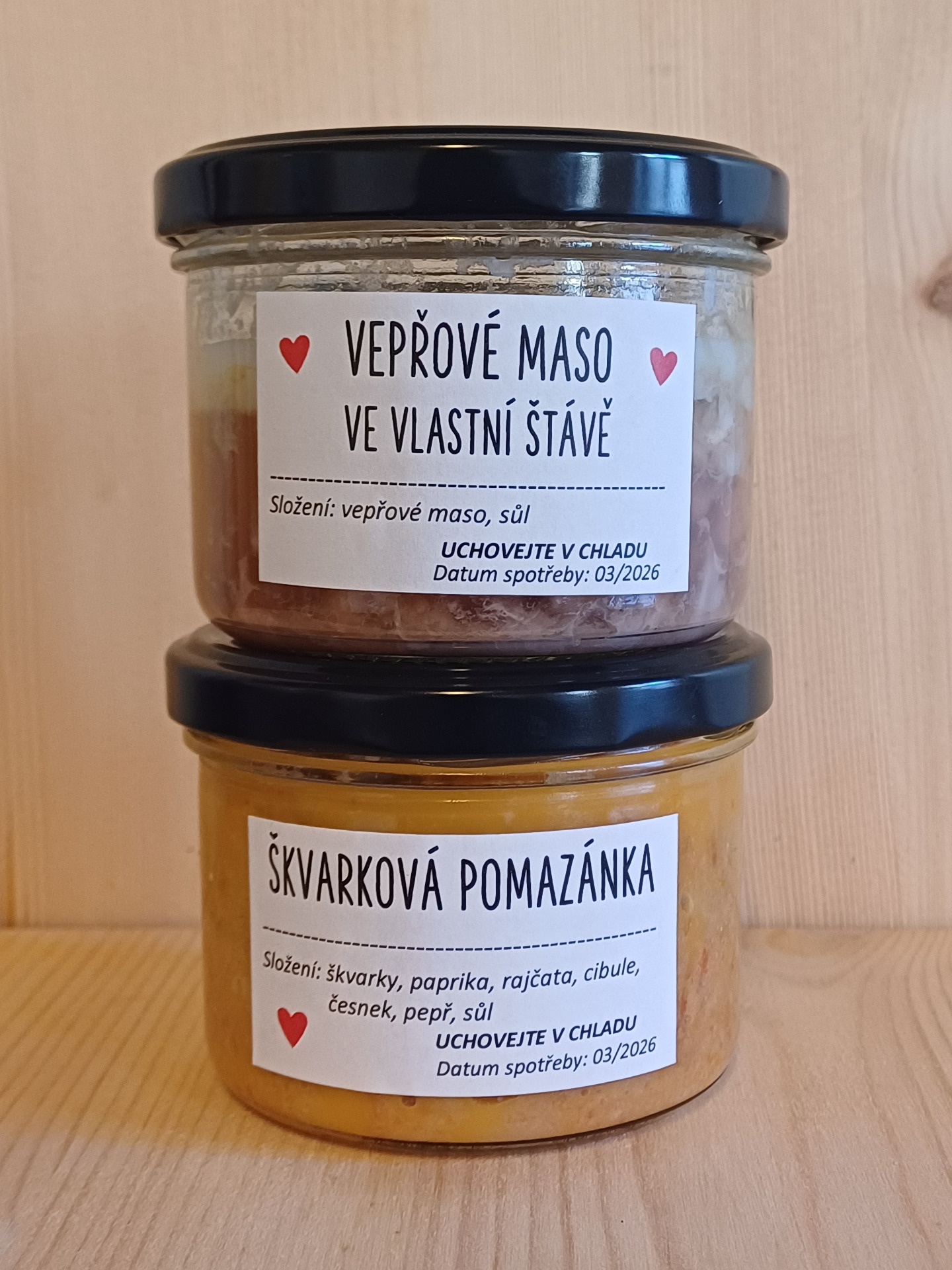 Balíček vepřové ve vlastní šťávě a škvarková pomazánka